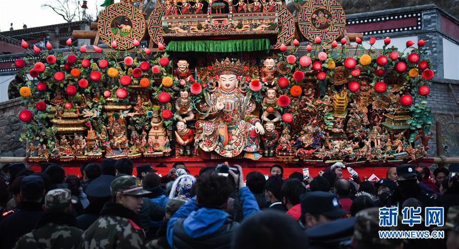 2月22日,人们在展出的酥油花前驻足观赏。当日,位于青海省西宁市湟中县境内的藏传佛教名寺塔尔寺举行酥油花展,吸引众多游客前来参观。酥油花是塔尔寺“艺术三绝”之一,由寺院艺僧以酥油为原料精雕细捏而成,以神像、人物、飞禽走兽、花草树木等为主要内容,形象逼真、色彩丰富,具有很高的艺术水平和独特的艺术魅力。新华社记者 吴刚 摄