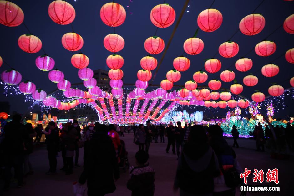 2016年台湾灯会于2月22日在桃园正式点灯启动。已持续举办27年的台湾灯会,是台湾最大观光活动。图为本届台湾灯会人潮涌动,预期可吸引1200万人次。中新社记者 陈悦 摄