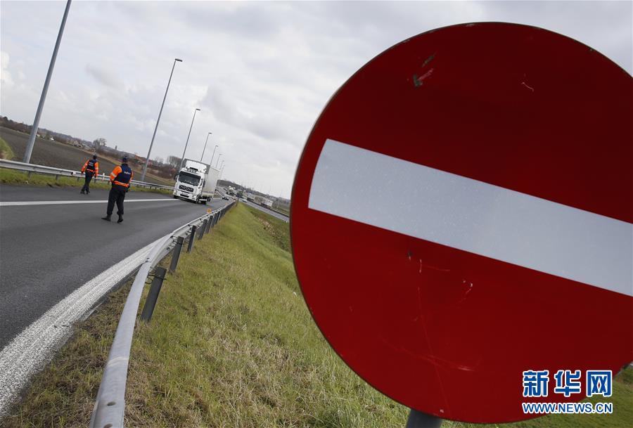 2月24日,在比利时靠近与法国边境的阿丁凯尔克小镇,比利时警方拦截卡车进行检查。因担心法国清理位于加莱郊区的难民营导致难民涌入比利时境内,比利时政府23日晚间宣布临时性加强比法边境的检查措施。 新华社记者叶平凡摄