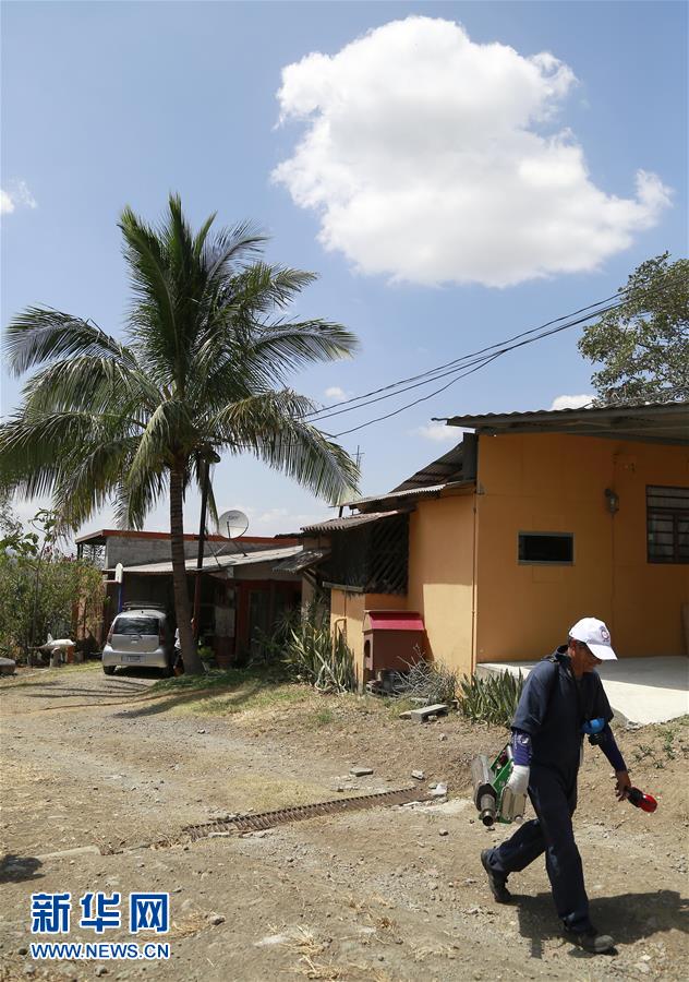 2月23日,在哥斯达黎加的圣安娜,一名卫生部工作人员进行灭蚊防疫工作。新华社发(肯特·吉尔伯特摄)