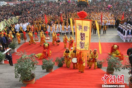 图为参拜人员向医圣敬献山茱萸、山药、丹皮、地黄等六味优质中药材。 李晋 摄