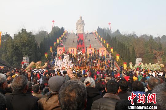 图为近万名民众及游客在南阳医圣苑内的医圣山下祭拜医圣张仲景。 李晋 摄