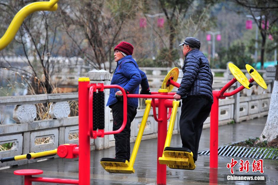 翠湖边锻炼身体的老人。 中新社记者 刘冉阳 摄