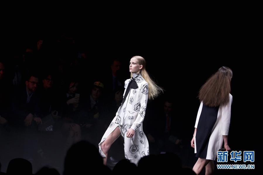2月25日,在意大利米兰,模特展示安蒂珮玛品牌服饰。 当日,安蒂珮玛品牌服饰亮相2016米兰秋冬时装周。 新华社记者金宇摄