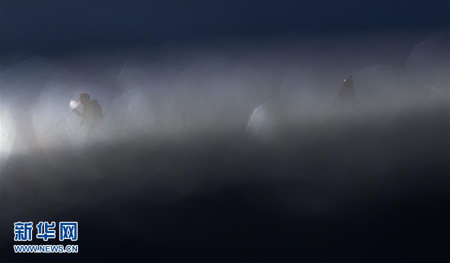 2月17日,参赛选手在短距离赛中。当日,2016“搜狐杯”全国滑雪登山挑战赛在河北崇礼万龙滑雪场开幕,并进行了短距离赛和垂直竞速赛的争夺。 新华社记者费茂华摄