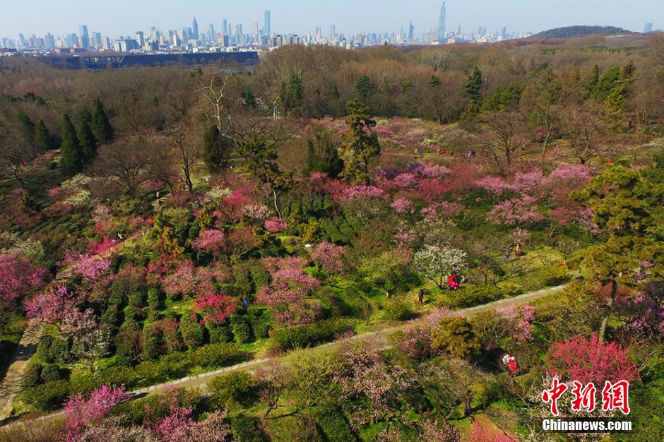 航拍南京梅花山 姹紫嫣红分外妖娆