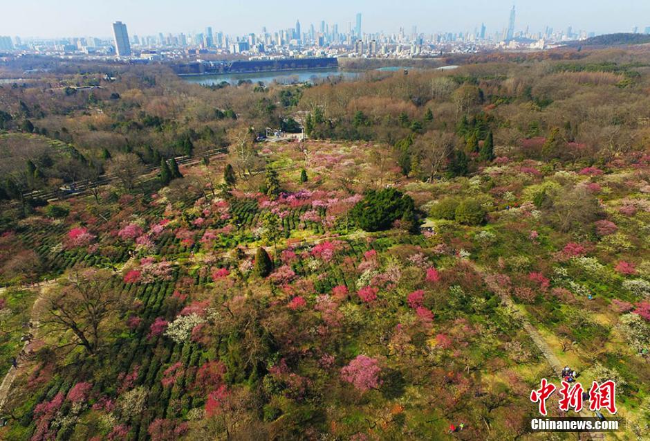 航拍南京梅花山 姹紫嫣红分外妖娆