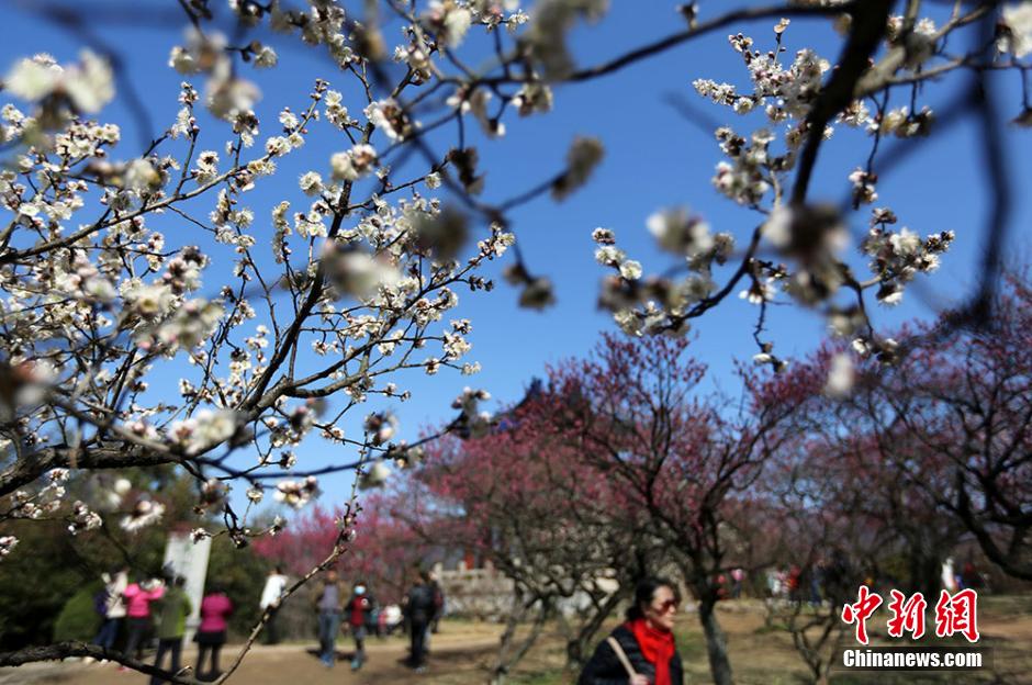 航拍南京梅花山 姹紫嫣红分外妖娆