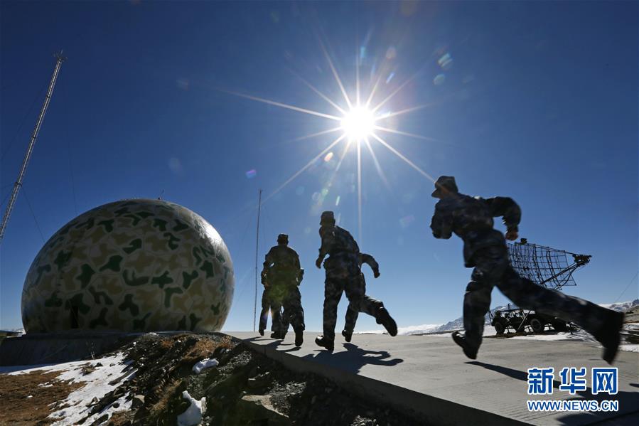 2月2日,空军驻藏某雷达站官兵在演练中快速奔向阵地准备“战斗”。当日,空军驻西藏某雷达站在冰雪覆盖的阵地组织了一场紧急拉动演练,锤炼部队在极端条件下的战斗能力。该雷达站海拔4588米,氧气量不足平原的50%,年平均气温零下10度,最大风力11级。数十年来,雷达站一代代官兵扎根雪域,以“山高标准更高,缺氧不缺斗志”的精神,圆满完成了对空警戒、航空兵部队训练和军民航飞行等雷达情报保障任务。新华社发(刘畅 摄)