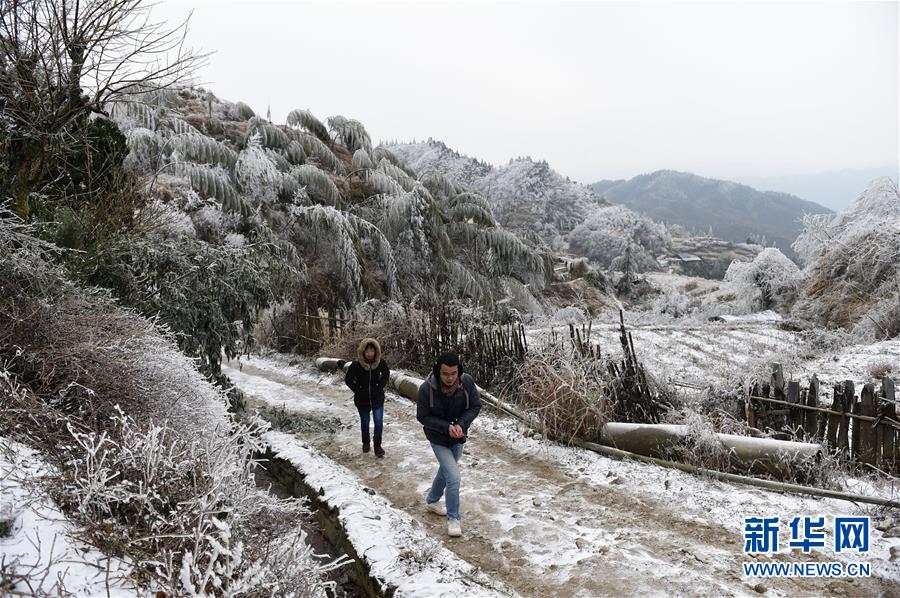 这是被冰雪覆盖的广西桂林市资源县车田苗族乡黄保村笋山头屯(1月23日摄)。 1月24日,广西南宁、柳州、桂林、百色、钦州、防城港、梧州等地持续发布道路结冰黄色预警,罕见寒潮持续影响广西各地。据广西气象台最新预报,1月24日至25日,广西高寒山区及桂北部分地区有冻雨、雨夹雪或雪。大部地区气温明显下降。新华社记者陆波岸摄