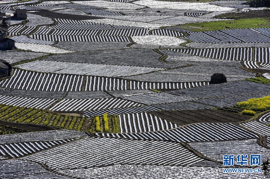 这是2月28日在广西罗城县乔善乡板团村拍摄的田园景色。春耕时节,广西河池市罗城仫佬族自治县气温回升,当地农民抢抓农时,起垄耕种。 新华社发(韦如代 摄)