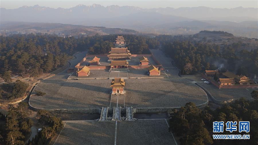 这是2月28日航拍的清西陵泰陵。清西陵位于河北易县永宁山下,始建于1730年,共有14座陵墓,是全国重点文物保护单位和世界文化遗产。 新华社发(刘满仓 摄)