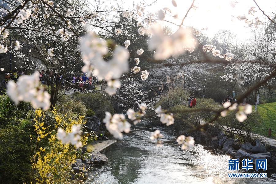 这是西湖景区太子湾公园盛开的樱花(3月11日摄)。连日来,杭州的樱花渐次开放,在种植有650株樱花树的西湖景区太子湾公园,晚樱品种已经进入最佳观赏期,吸引大批市民和游客前来游览观赏。新华社记者 黄宗治 摄