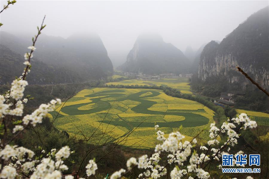 这是3月12日在贵州省安顺市龙宫风景区拍摄的“绣”在油菜花海中的繁体“龙”字。春风拂面时,菜花飘香至。近期,我国南方各地油菜花相继盛开,田野间金黄画卷映入眼帘,吸引人们踏青游玩,品味春意。 新华社发(卢维 摄)