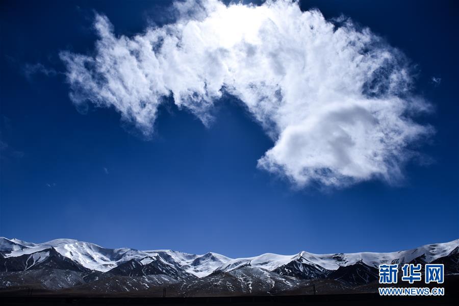 3月11日,在青海省格尔木市西大滩,昆仑雪山与蓝天白云相互映衬。阳春三月,巍峨的昆仑山白雪皑皑,银装素裹。昆仑山西起帕米尔高原,山脉全长2500公里,平均海拔5500-6000米。 新华社记者吴刚摄