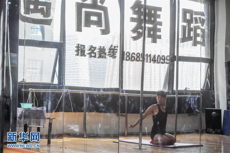 5月14日,张细达在练舞房内进行热身。 新华社记者欧东衢摄