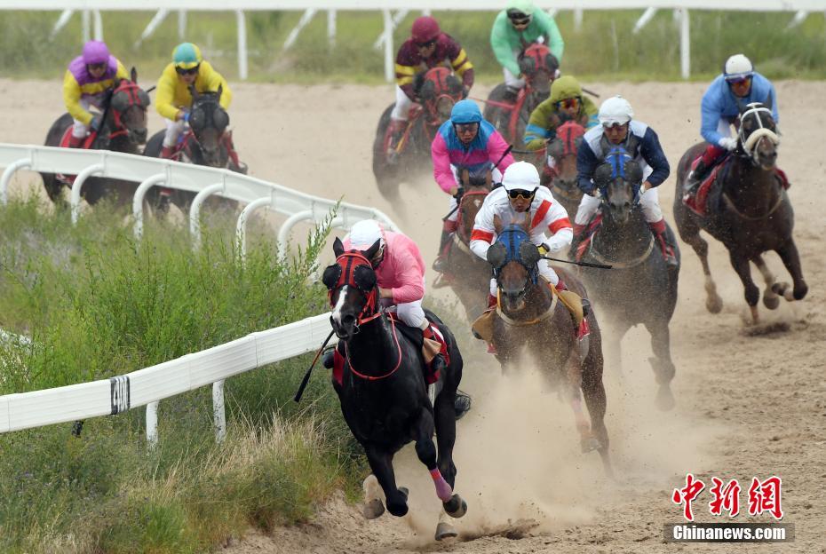 2019全国速度马经典大赛暨第二届科尔沁右翼中旗那达慕7月27日至29日在图什业图赛马场隆重举行。科右中旗是科尔沁文化的重要发祥地,享有 “1旗9乡4非遗”美誉,本届科右中旗那达慕是中旗近年来举办的一届高规格的文化、体育系列活动,集中体现了科右中旗民族传统体育、民俗风情等风采。图为7月27日举行的速度赛马比赛。中新社记者 毛建军 摄