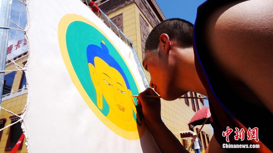 画师画唐卡主佛佛头。张添福 摄