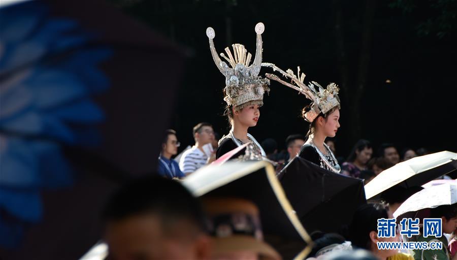 两名参加音乐盛典的当地少数民族工作人员在现场(7月26日摄)。