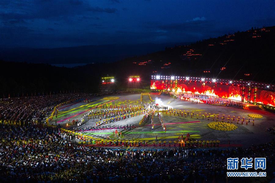 7月26日,在西昌市洛古波乡火把场,西昌市的火把狂欢夜在服饰表演中拉开序幕。