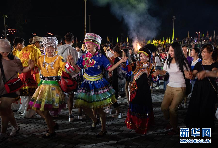 7月26日,在西昌市洛古波乡火把场,游客和当地群众载歌载舞。