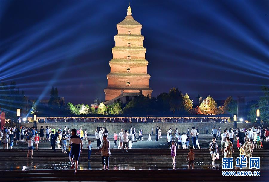7月26日,游人在西安大雁塔文化休闲景区游玩。新华社记者 邵瑞 摄
