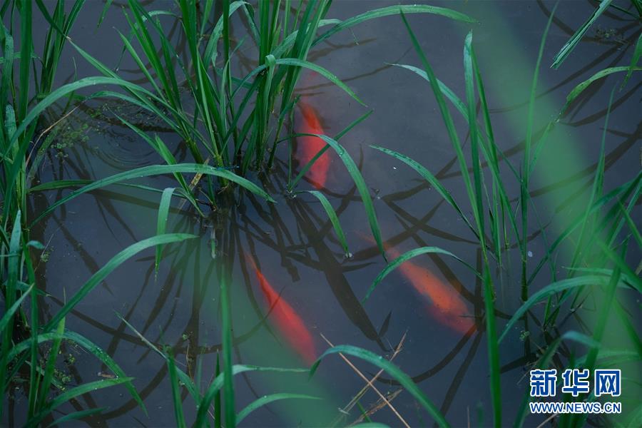 7月25日,青田县小舟山乡梯田中的红色田鱼。