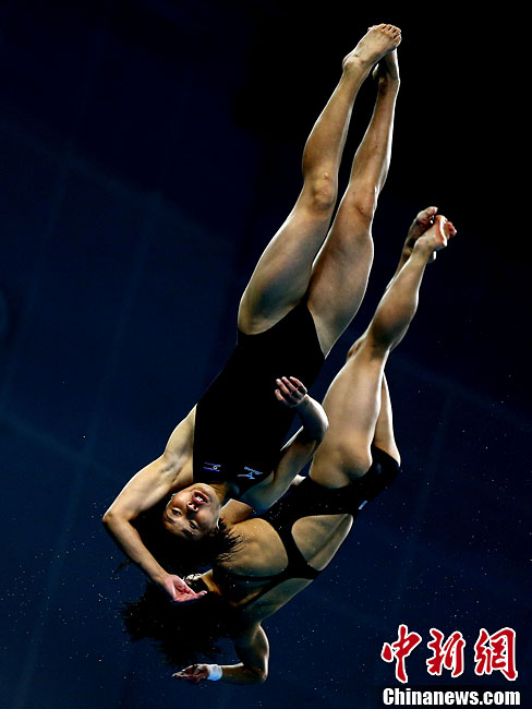 10月8日,2013年东亚运动会跳水比赛进入第二日。在女子双人十米台决赛中,朝鲜选手金振玉、金恩香(图)以总分305.94摘得银牌。中国组合邢怡颖、王文娜获金牌。中新社发 富田 摄