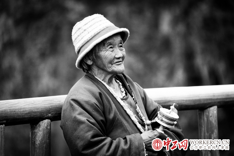 行走在西藏,吸引你的绝不止令人窒息的美景,你随处可见拿着转经筒的老人和天真质朴的孩子。当你行走在风景中,他们的一个微笑、一个虔诚的眼神,会让你感受到人与自然和谐相处的美好。图为在鲁朗林海景区外一个拿着转经筒的老人。