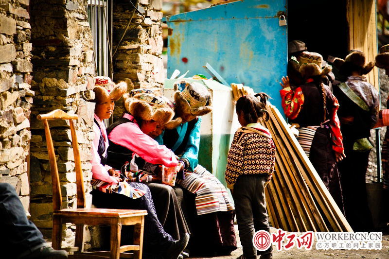 行走在西藏,吸引你的绝不止令人窒息的美景,你随处可见拿着转经筒的老人和天真质朴的孩子。当你行走在风景中,他们的一个微笑、一个虔诚的眼神,会让你感受到人与自然和谐相处的美好。图为卡若拉冰川脚下一个小村子里,女孩们正在吃东西。