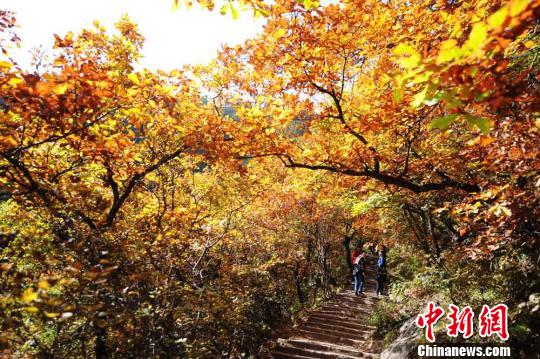 10月10日,秋意浓浓,此时的兰州兴隆山随处可见层林尽染,色彩斑斓的美景引人入胜,五彩秋色更是漫山遍野,让人沉迷在这个童话世界中。杨艳敏 摄