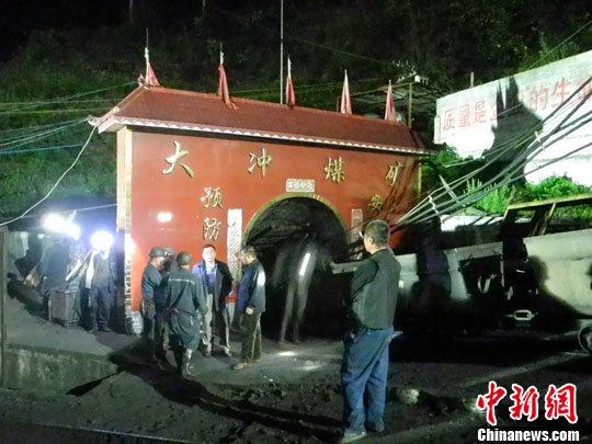 10月11日下午1时30分,贵州黔南州省惠水县长田乡大冲煤矿发生透水事故,7人被困井下。事故煤矿设计生产能力为9万吨每年,为证照齐全的生产矿井,事故原因目前仍在调查中。图为事故矿井井口。中新社发 鲍光翔 摄