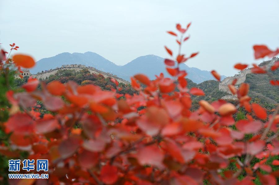 10月13日,游人在红叶掩映下的水关长城游览。进入10月份,北京秋意渐浓。八达岭长城和八达岭国家森林公园红叶岭景区红叶竞相展艳,层林尽染。新华社记者陈晔华摄
