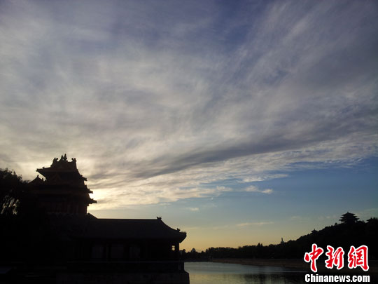 10月14日,北京再现蓝天白云深秋美景。据气象预报提示,当日开始一股冷空气将至中国北方大部分地区,大风降温将谢幕北方晚秋。中新社发 杨可佳 摄