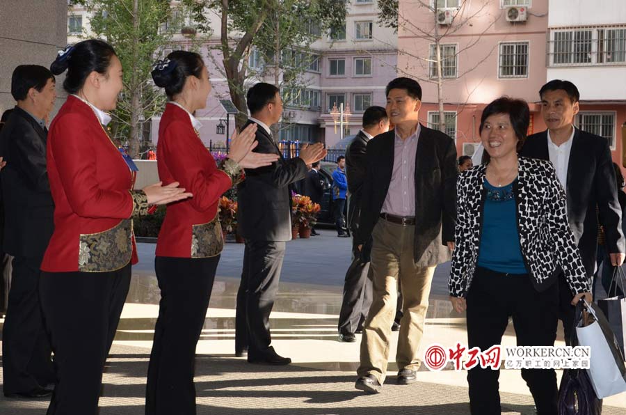 2013年10月16日,参加中国工会第十六次全国代表大会的各代表团代表陆续抵京。图为湖南代表团代表到达天泰宾馆住地。中工网记者 秦笑语 摄