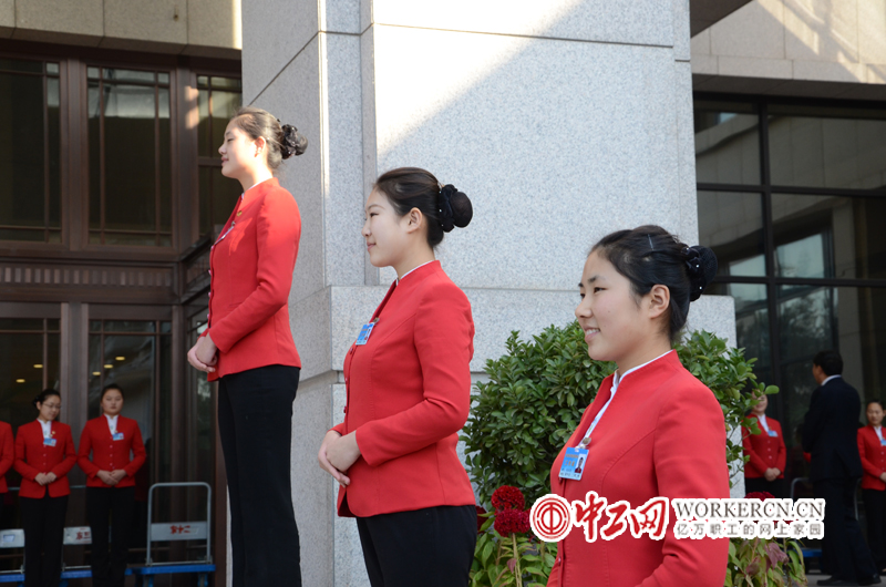 参与中国工会十六大的各地代表陆续抵京之际,各住地的服务员们也在用自己的“微笑”为代表们提供热情、周到的服务。    中工网记者 秦笑语摄