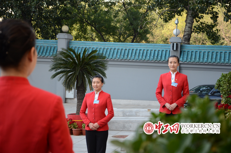 参与中国工会十六大的各地代表陆续抵京之际,各住地的服务员们也在用自己的“微笑”为代表们提供热情、周到的服务。    中工网记者 秦笑语摄