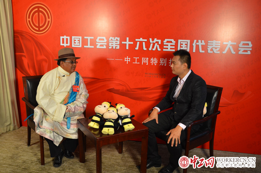 10月18日,中国工会第十六次全国代表大会在北京召开,来自中央和地方70余家媒体的百余名记者对中国工会十六大进行了全方位的报道。作为中国工会十六大的官方报道网站,中工网将以图片、文字、音频、视频等立体式向广大职工群体和工会工作者呈现整个大会的盛况。此次中工网在中国工会十六大新闻中心设立现场演播室,与会代表可在大会现场就近参与录制视频访谈节目,及时与广大网友分享上会心得。图为西藏阿里地区工会办事处副主任、中国工会十六大代表多琼做客中工网演播室。 (中工网记者 笑语摄)
