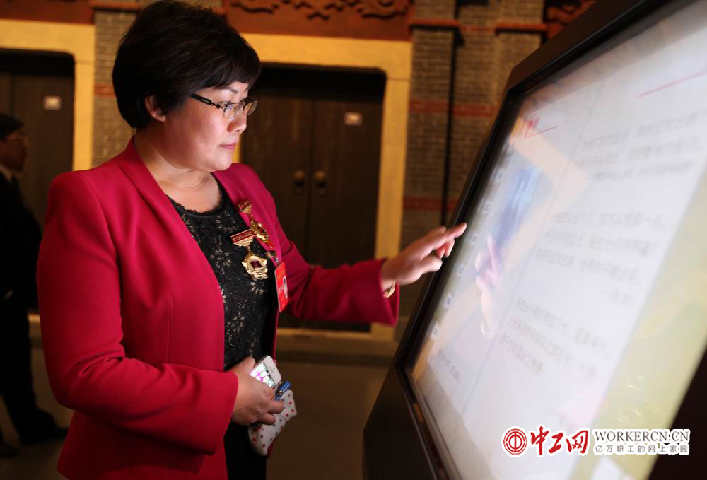 甘肃省武威市总工会主席许萍时而眉头紧皱,时而激动振奋,她说今天的成就来之不易,我们不能忘记过去,要用自己的双手创造更美好的今天。作为一名基层工会主席,此次参加中国工会十六大感触颇深,工人阶级要紧紧团结在工会周围,工会要紧紧跟着党走,我们必须要发扬劳模精神,诚实劳动,这样才能更快的实现中国梦。(中工网记者马杨灵 摄)