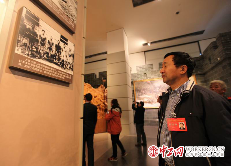 黑龙江省总工会副主席孙永成在一张照片面前久久站立,这是一张被奴役的中国劳工照,孙永成说过去的工人阶级是被奴役的群体,而现在的工人阶级是领导阶级,尤其是听了中央领导人在十六大开幕式上的祝词后,他更加坚信实现中华民族伟大复兴的中国梦,必将造福工人阶级,也必须紧紧依靠工人阶级。(中工网记者马杨灵 摄)