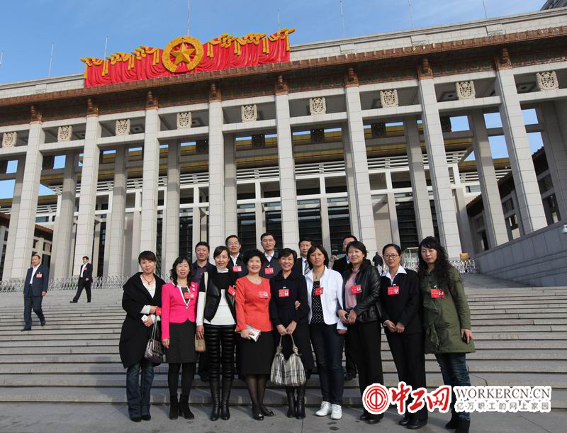 代表们在国家博物馆前合影留念。(中工网记者马杨灵 摄)