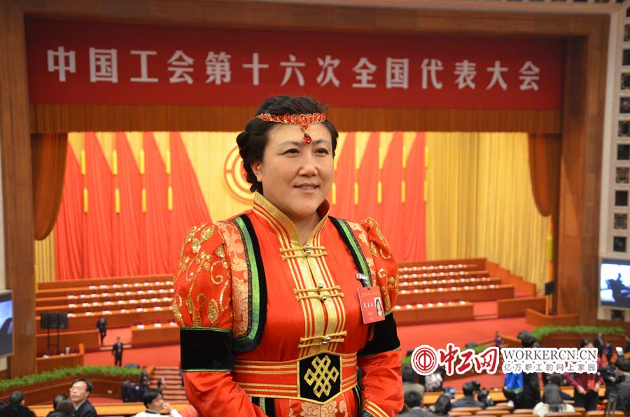 中国工会第十六次全国代表大会于10月22日上午在京闭幕。图为少数民族代表佟秀琴在闭幕会现场。   (中工网记者 笑语摄)