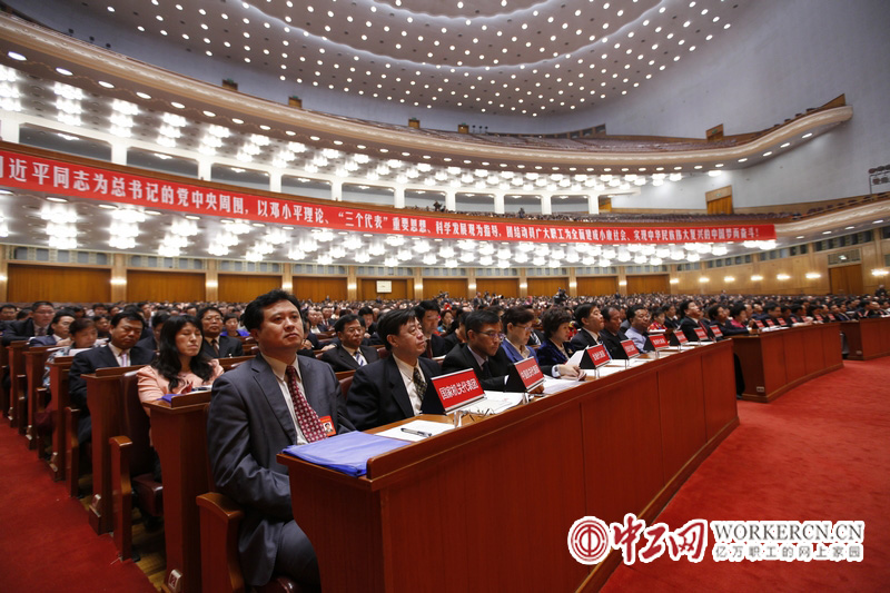 中华全国总工会副主席、书记处第一书记陈豪在致闭幕词时,代表全总十六届执委会对全体代表和全国广大职工的信任表示衷心的感谢。他说,新一届执行委员会任期的五年,是全面贯彻落实党的十八大精神、全面建成小康社会的决定性阶段。我们一定要高举中国特色社会主义伟大旗帜,坚定对中国特色社会主义的道路自信、理论自信、制度自信,坚定不移走中国特色社会主义工会发展道路,全心全意服务职工群众,不断提高工会工作科学化水平,引导广大职工始终做坚持中国道路的柱石,弘扬中国精神的楷模,凝聚中国力量的中坚,全面深化改革的推动者、参与者,为实现中华民族伟大复兴的中国梦作出新贡献。图为大会现场。中工网记者韩靖摄
