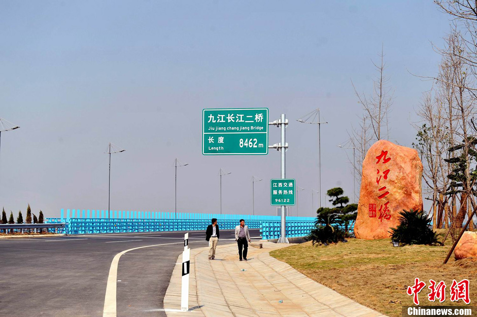 10月28日,江西九江长江二桥将正式建成通车,制约赣鄂两省的过江瓶颈将全面打通。自2009年9月开工建设以来,九江长江二桥一直备受关注。该桥地处赣、鄂、皖三省交界处,是福银高速通过长江的重要咽喉,也是连接赣、鄂、皖三省以及中部地区各省份的重要过江通道。该桥是江西省建设的第一座具有世界领先水平的跨长江高速公路桥梁,大桥长8462米,主跨跨径达818米,目前居世界斜拉桥第7位、国内第4位。该桥主塔高达240多米,相当于80多层高楼。图为10月25日,开通前的九江长江二桥。刘占昆 摄