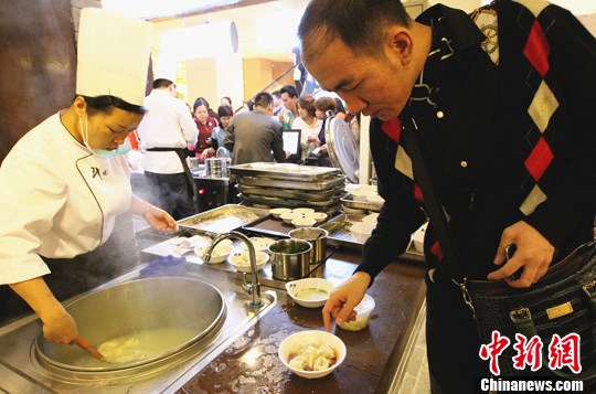 高豆花、川北凉粉、德元、陆稿荐、一四一火锅、正东担担面……这些承载了老重庆人太多儿时记忆的百年老字号小吃店,如今集体重现斗味。图为重庆餐饮老字号重现,市民在美食中心尝鲜。周毅 摄