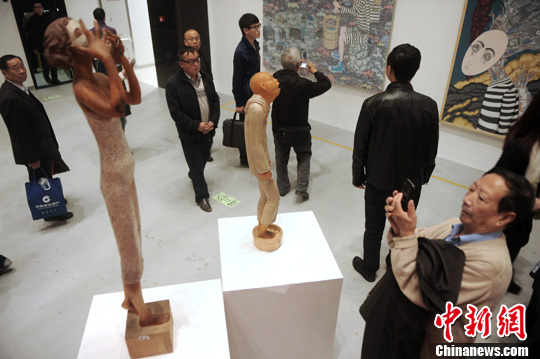 10月29日,重庆首个省级美术馆——“重庆美术馆”正式授牌开馆。图为市民正在观展。陈超 摄