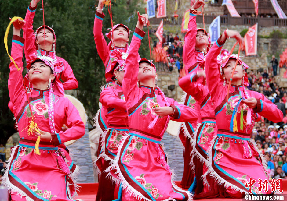 11月3日,“中国古羌城”在四川茂县开城,当地羌族民众载歌载舞喜庆“中国古羌城”开城。图为羌年文艺表演。何海清 摄