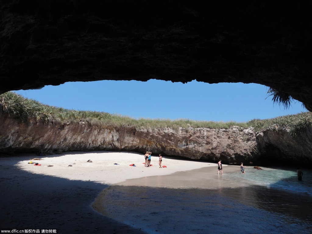隐藏的海滩入口。2013年11月6日报道,欢迎来到隐藏的海滩——世界上最美好的爆炸废墟。在墨西哥的马里亚塔小岛瓦拉塔港有一个隐藏的海滩,想要一睹它细腻的沙滩和至纯的海水,必须潜水穿过一个狭小的洞穴。一战之前,由于马里亚塔岛上无人居住,墨西哥政府曾把这里当作射击练习场,炸弹爆炸形成岛上无数洞穴及独特岩层,加之当地气候条件以及侵蚀作用,这个隐蔽的世外桃源才得以形成。