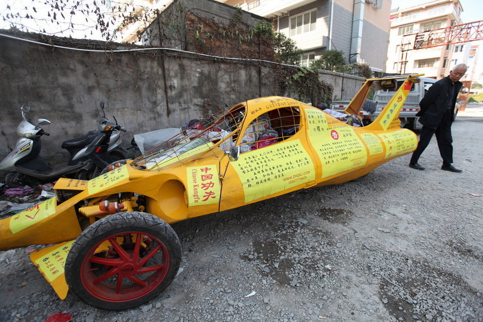 2013年11月19日深夜,一辆奇怪的“跑车”开到街头。值班交警称车长约5米,高和宽都是1米左右,有驾驶室和后备厢,前方两个车轮,后方一个,大概可以算作是“三轮两厢跑车”。饭哥/东方IC