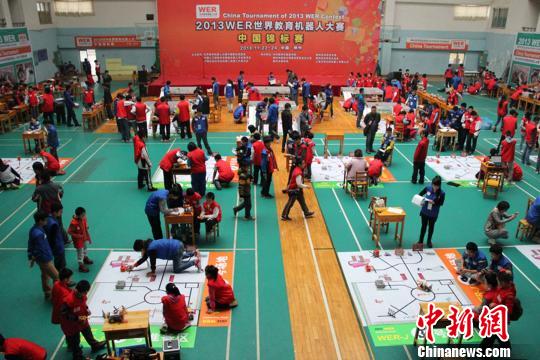 11月24日,以 “智能机器人管家” 为主题的2013年WER世界教育机器人大赛中国锦标赛在广西柳州市举行,大赛吸引中国各地1200多名中小学生参加。朱柳融 摄